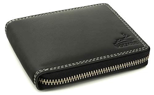 Fa.Volmer ® Portafoglio in pelle nera in vera pelle di vacchetta con robusta cerniera esterna Protezione RFID - Certificato TÜV - # BlZip07