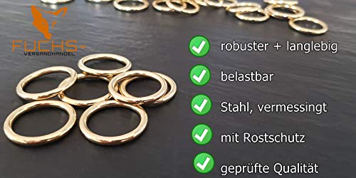 Volpe, anelli color oro, 20 mm, 10 pezzi, in acciaio, robusti e durevoli, in lega di ottone dorata, diverse misure disponibili: diametro interno: 20,25,31,40 mm (20 mm - 10 pezzi)