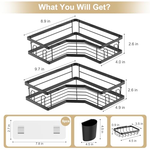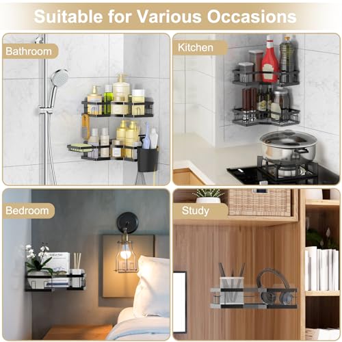 Durevole e antiruggine: la nostra mensola angolare nera è realizzata in acciaio inossidabile di alta qualità, che lo rende durevole e antiruggine. La nostra mensola da bagno senza fori è la soluzione perfetta per tutti coloro che vogliono risolvere il loro problema dell'organizzatore del bagno. Non importa se grande o piccolo, il nostro portaoggetti da doccia da appendere è un must per tutti coloro che apprezzano un bagno ordinato.