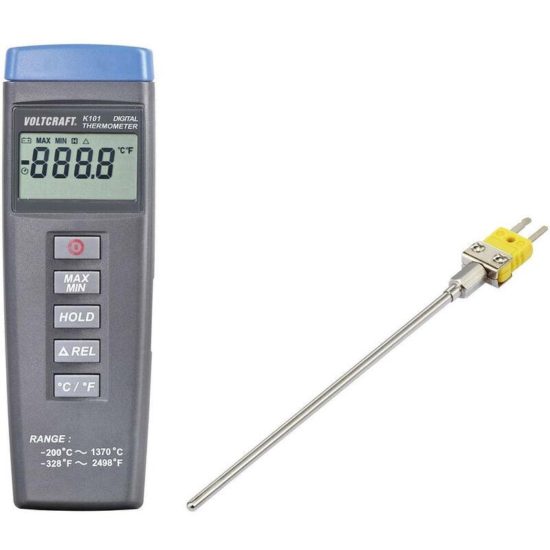 Dettagli tecnici Alimentazione elettrica Batteria 9 V (1x) Calibrato di fabbrica senza certificato Dimensione del prodotto, larghezza 54 mm Dimensione del prodotto, lunghezza 164 mm Dimensioni (L x L x A) 164 x 54 x 34 mm Dimensioni prodotto Altezza 34 mm Modello (in generale) 1 Canale Peso 180 g Precisione (più / meno) 0.3 % Precisione di base (+/-) °C 1 °C Risoluzione (temperatura) 0.1 °C Sensore tipo K Temperatura (max.) +1370 °C Tipo prodotto Termometro Intervallo di misura sensore: da -100 a 300 °C Precisione di misura: sensore di 2,5 °C Termometro digitale + sensore ad immersione L'approccio conveniente alla misurazione della temperatura professionale. Il K101 è uno strumento di misura della temperatura pregiato e robusto al prezzo premium. Il sensore ad immersione (tipo K) | di VOLTCRAFT è particolarmente adatto per la misurazione della temperatura di liquidi, metalli liquidi o sostanze simili ai gel. Il sensore è adatto per un intervallo di temperatura che lo rende perfetto