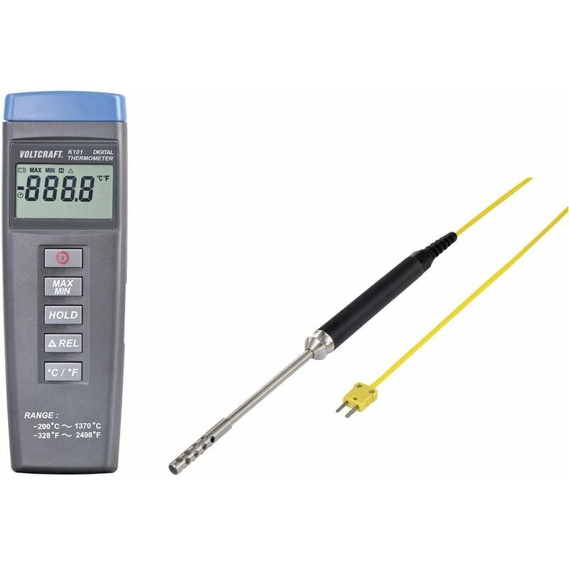 Dettagli tecnici Alimentazione elettrica Batteria 9 V (1x) Calibrato di fabbrica senza certificato Dimensione del prodotto, larghezza 54 mm Dimensione del prodotto, lunghezza 164 mm Dimensioni (L x L x A) 164 x 54 x 34 mm Dimensioni prodotto Altezza 34 mm Modello (in generale) 1 Canale Peso 180 g Precisione (più / meno) 0.3 % Precisione di base (+/-) °C 1 °C Risoluzione (temperatura) 0.1 °C Sensore tipo K Temperatura (max.) +1370 °C Tipo prodotto Termometro Intervallo di misura sensore: da -100 a 600 °C Precisione di misura: sensore di 2,5 °C Termometro digitale + sensore aria L'approccio conveniente alla misurazione della temperatura professionale. Il K101 è uno strumento di misura della temperatura pregiato e robusto al prezzo premium. Il sensore aria (tipo K) | di VOLTCRAFT è particolarmente adatto per la misurazione della temperatura dell'aria e dei gas. Il sensore può essere utilizzato per un campo di temperatura da | a | a |, quindi le applicazioni più comuni sono il