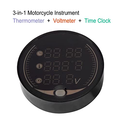 Voltmetro digitale, 3-in-1 ABS Termometro digitale elettronico per moto Voltmetro Orologio Indicatore di temperatura per tutte le motociclette con alimentazione a 12V