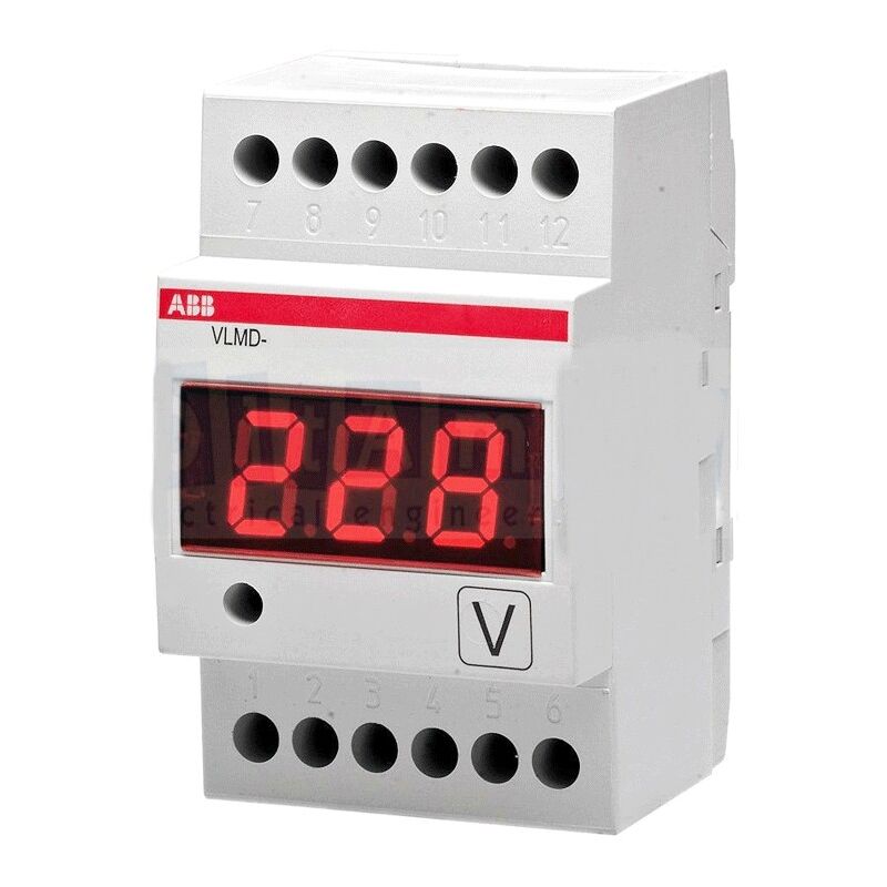 Voltmetro digitale Abb, con le seguenti caratteristiche: Tipo di corrente AC / DC Tensione 600VCA Grado di protezione IP20 Tipo di misura digitale Tipo di montaggio guida DIN Perdita di potenza 4W La gamma strumenti digitali è composta da un voltmetro e amperometri per c.a. e c.c. (VLMD e AMTD) e un frequenzimetro (FRZ). Gli amperometri misurano tramite inserzione indiretta grazie ad appositi accessori quali trasformatori di corrente per c.a. e shunt per c.c. Il fondo scala è programmabile dall'utente. Le versioni VLMD-R e AMTD-R integrano un relè interno programmabile per impostazione di soglie di allarme. Caratteristiche: Serie Abb Precisione ±0,5% F.S. ±1 a 25 °C Tipo di corrente AC / DC Tensione 600VCA Grado di protezione IP20 Frequenza 35 ... 400 Hz Intervallo di misura 0...500 V Tipo di misura digitale Tipo di montaggio guida DIN Codice classificazione oggetto Consumo di corrente (@Pcons) 4 W Perdita di potenza 4 W Temperatura ambiente in funzione -40 ... +55 °C Larghezza 52.5 mm
