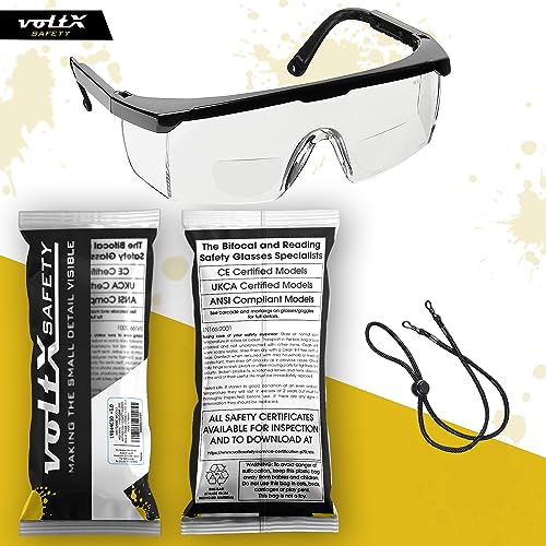 VoltX ‘CLASSIC' Occhiali di sicurezza da lettura BIFOCALI con certificazione CE EN166F (TRASPARENTI +3,0 diottrie) cordino di sicurezza incluso,con trattamento anti appannamento