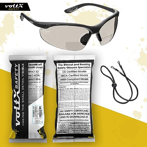 VoltX 'CONSTRUCTOR' Occhiali di sicurezza da lettura BIFOCALI (+2,0 diottrie SPECCHIO) con certificazione CE EN166F/Occhiali da ciclismo cordino di sicurezza incluso