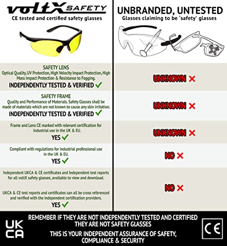 VoltX 'CONSTRUCTOR' Occhiali di sicurezza Plano con certificazione CE EN166F/Occhiali da ciclismo (GIALLI) con trattamento anti appannamento