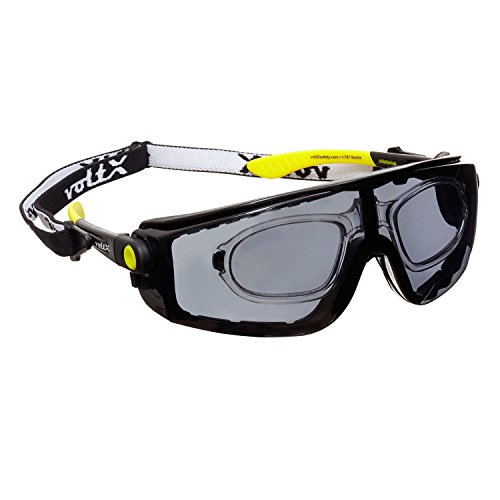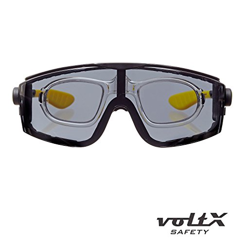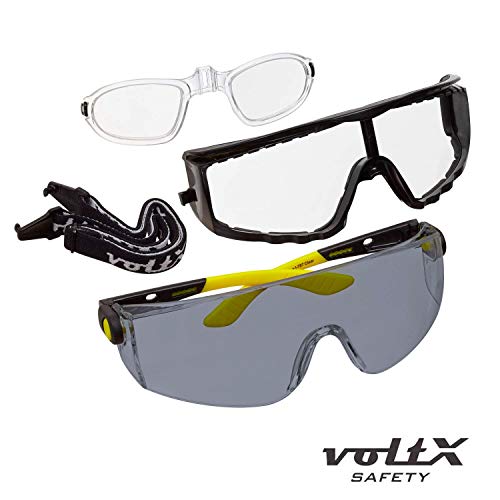 VoltX 'QUAD' 4 in 1 - Occhiali di sicurezza da lettura con ingrandimento e lenti intere (+3,0 Diottrie, GRIGIO FUMO) - con inserto in gommapiuma e fascia rimovibile - certificazione CE EN166F