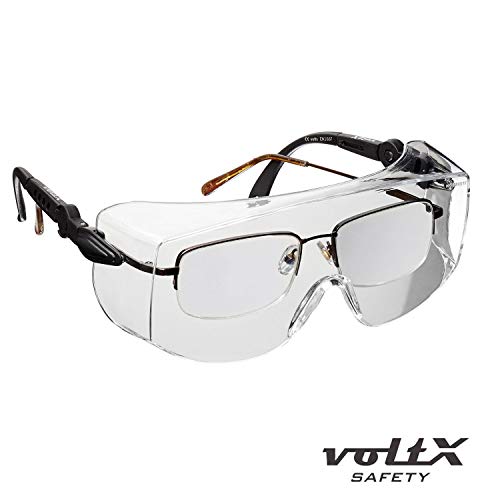 VoltX 'OVERSPECS' Occhiali di sicurezza per uso industriale dotati di certificazione CE EN166F (lenti trasparenti) aste regolabili singolarmente, anti-nebbia, resistenti ai graffi Safety Glasses