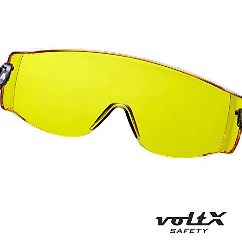 3 x voltX 'OVERSPECS' Occhiali di sicurezza per uso industriale dotati di certificazione CE EN166F (colori misti: 1x transparenti 1x giallo 1x grigio fumo) aste regolabili singolarmente, anti-nebbia, resistenti ai graffi.