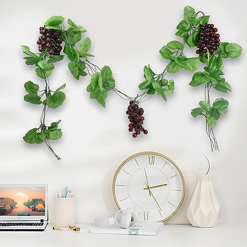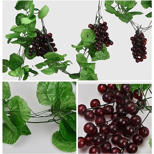 ✿ 【Realistico】 L'uva e le viti ad alta simulazione, i colori brillanti e le trame realistiche lo rendono naturale e lo stesso dei frutti veri, aggiungono un tocco di autenticità alla tua decorazione.