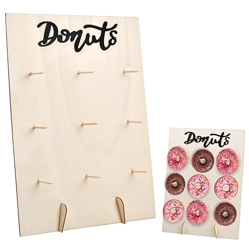 Volumoon Supporto per Ciambelle, Porta Ciambelle in Legno, Espositore per Ciambelle in Legno con Bastoncino di Legno, Porta Ciambella in Legno Rustico per Feste Compleanno Matrimonio (30 x 40 CM)
