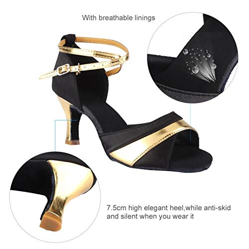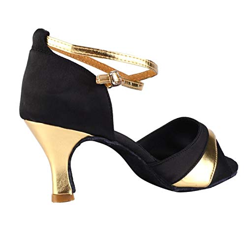 Voluxe Scarpe da Ballo, Scarpe Latine in Raso, Nero + Oro 37-40 Non deframmentazione per l'allenamento di Ballo Latino Sala da Ballo(37-37)