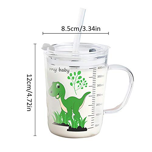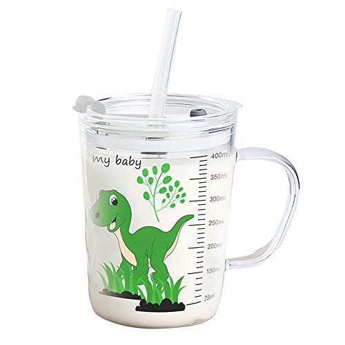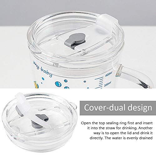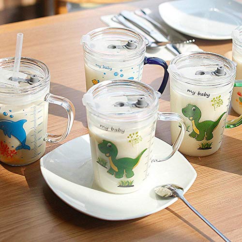 Volwco Tazze con coperchio e paglia per bambini, coperchi regolari a prova di perdite, trasparente con tazza di latte resistente al calore in scala, tazza per bere per bambini