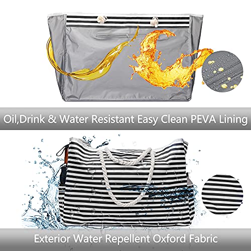 Vomgomfom Borsa Spiaggia Donna Grande XXL - Borsa Mare Grande XXL Famiglia, XXL Shopper Tracolla per Viaggio, Shopping, Beach Tote Bag con Chiusura Fibbia Magnetica(Strisce Bianche e Nere)