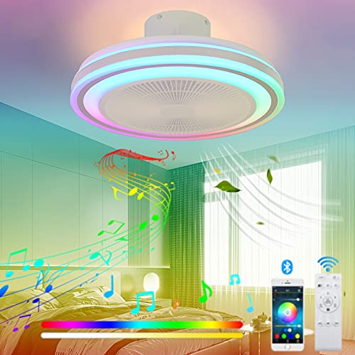 VOMI Dimmerabile Plafoniera con Bluetooth Altoparlante RGB Cambia Colore Ventilatore da Soffitto con Luce e Telecomando LED Musica Lampadario Silenzioso Ventilatore per Camera da Letto Festa