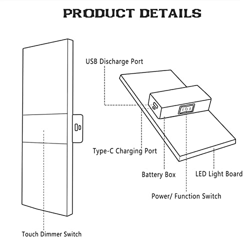 Lampada da parete a batteria: lampada da comodino LED da 3 W con batteria al litio ricaricabile integrata da 3000 mAh. La ricarica completa richiede solo 3-6 ore. Può funzionare in modalità più bassa fino a 24 ore e al massimo 12 ore ininterrottamente luminosità, porta di ricarica USB, può essere ricaricata da qualsiasi dispositivo USB, può anche essere utilizzata come power bank, luce di emergenza