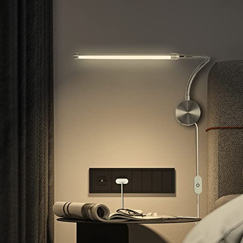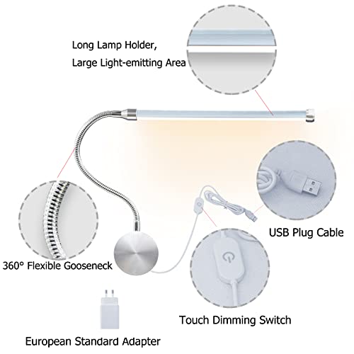 VOMI Lampada da Parete LED Dimmerabile con Interruttore Touch, 6W Lampada a Collo di Cigno Flessibile 360° Applique da Parete Interno con Cavo USB e Adattatori UE