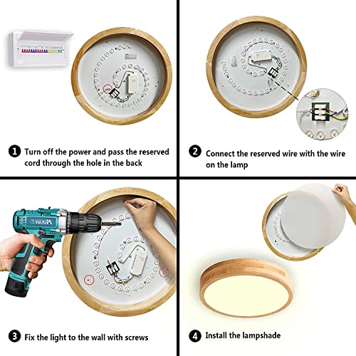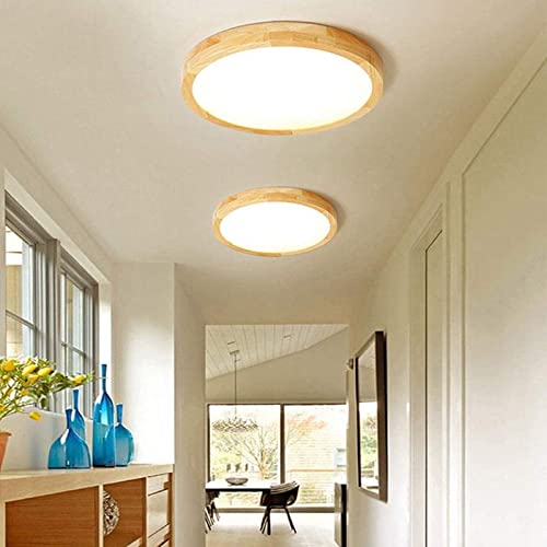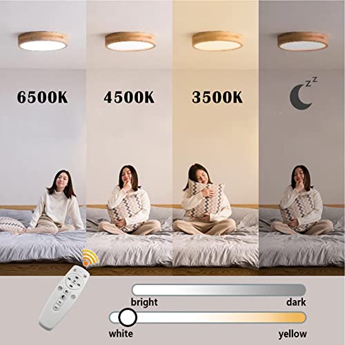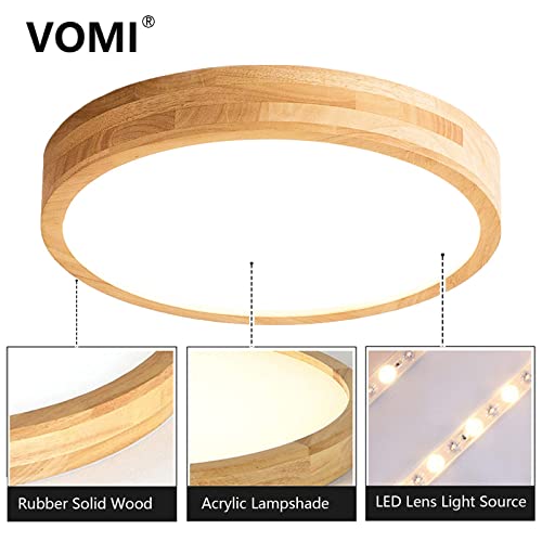 VOMI Lampada da Soffitto Dimmerabile con Telecomando, 24W Plafoniera LED Soffitto Legno Moderna Rotonda Lampada in Legno, Plafoniere da Soffitto per Camera da Letto Soggiorno Ufficio Corridoio...