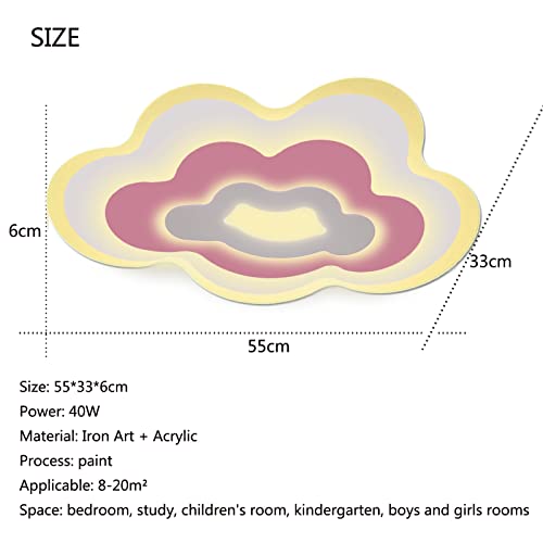 Materiale e dimensioni - La plafoniera a led creativa nuvola è realizzata in ferro battuto di alta qualità, può prevenire corrosione, ruggine e durata. Il paralume in acrilico appositamente trattato può indebolire maggiormente la luce. Questo protegge te e gli occhi del tuo bambino dalla luce intensa. Dimensioni: 55*33*6 cm. Colore: Combinazione rosa e bianco