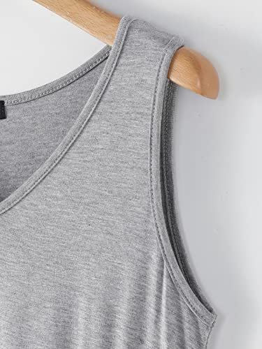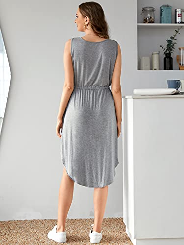 VONDA - Abito casual da donna, senza maniche, scollo a V, abito estivo con coulisse in vita, spacco laterale A-grigio L