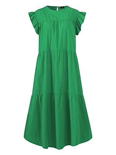 VONDA Abito estivo da donna con maniche a volant Mini abito a tunica in cotone con scollo rotondo, A-verde, XL