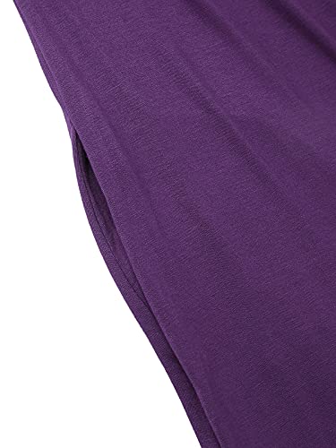 VONDA Donna Vestito Lungo Abito Estate Maniche Corte Scollo a V Tinta Unita Maxi Spiaggia Dress A-Viola S