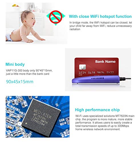 Vonets VAP11G-300 2.4GHz 300Mbps Punto di Accesso WiFi,Mini Wireless Bridge,Adattatore LAN Wireless,WiFi Hotspot Signal Booster Extender,WiFi a LAN