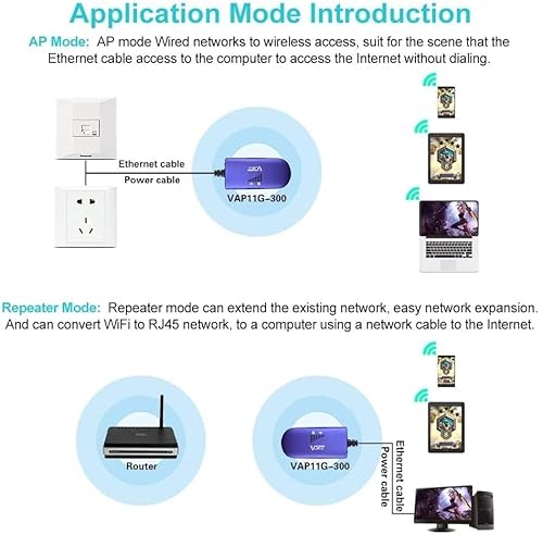 VONETS VAP11G-300 Mini WiFi Ripetitore Wireless Wlan Bridge Ethernet Adattatore WiFi Hotspot Extender Signal Booster Punto di Accesso 2.4G 300Mbps 1 RJ45 Porta DC/USB per stampante di rete DVR