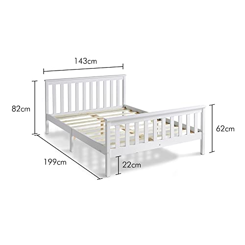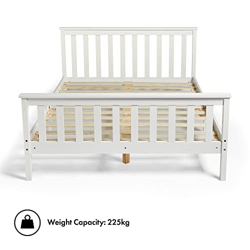 VonHaus, letto matrimoniale in pino, 198 cm, struttura letto in legno bianco di pino in design classico shaker con testiera, pediera e rete a doghe