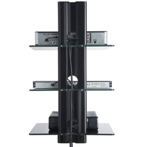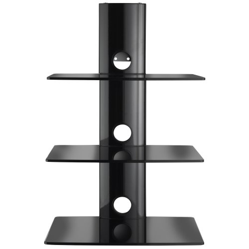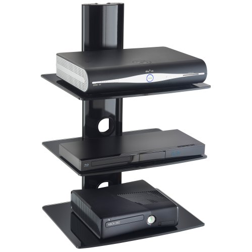 VonHaus 3 Mensole sospese in vetro temprato resistente nero con supporto per lettore DVD/Blu-Ray, decoder satellitare, console