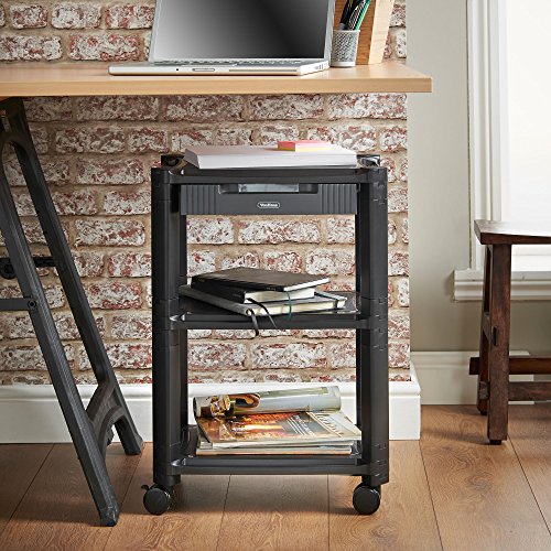Realizzato in plastica leggera in un classico colore nero, il cassetto superiore e dispone di un supporto integrato è impostato su rotelle per un facile manovra della casa o dell' ufficio