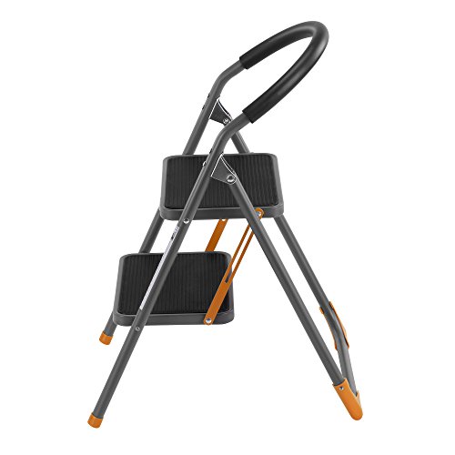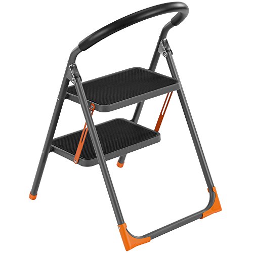 VonHaus - Scaletta/Sgabello Premium pieghevole, a 2 scalini, in acciaio resistente