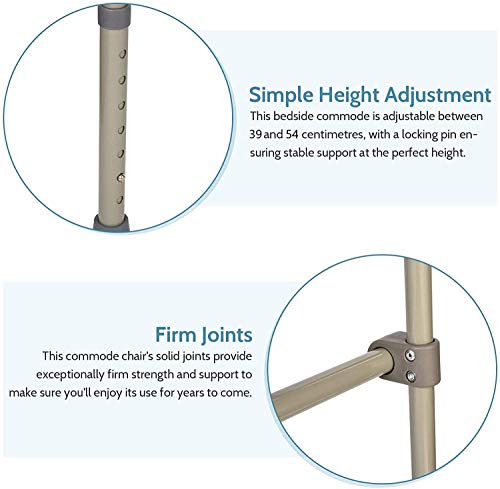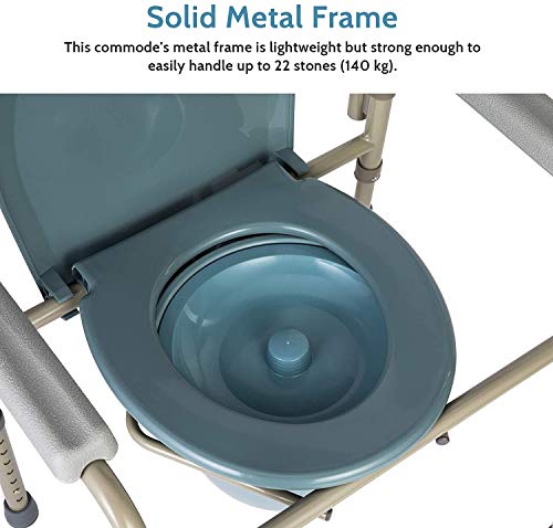 ROBUSTO E PORTATILE: con la sua robusta struttura in metallo, la nostra sedia da toilette supporta fortemente persone di tutte le forme e dimensioni fino a 136 kg;