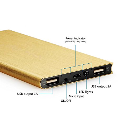 Vonpri 10000mah Caricabatterie Portatile Power Bank Batteria Esterna per iPhone7 iPad, Samsung Smartphones e Tablets, Oro