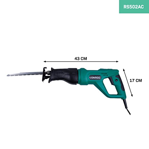 VONROC Seghetto a gattuccio 900W con manico girevole. Include 3 lame per legno e metallo e sacca portautensili