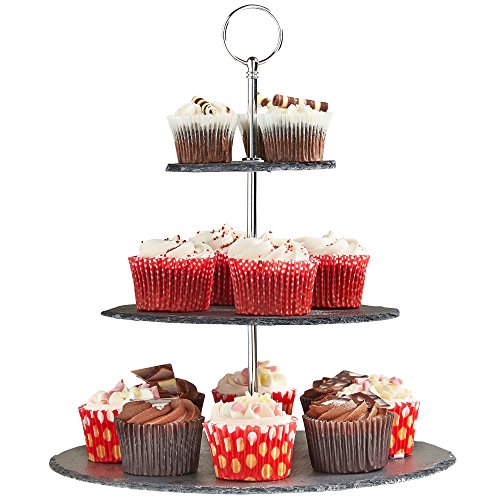 VonShef, alzata per torte in ardesia naturale a 3 piani con maniglia per il trasporto