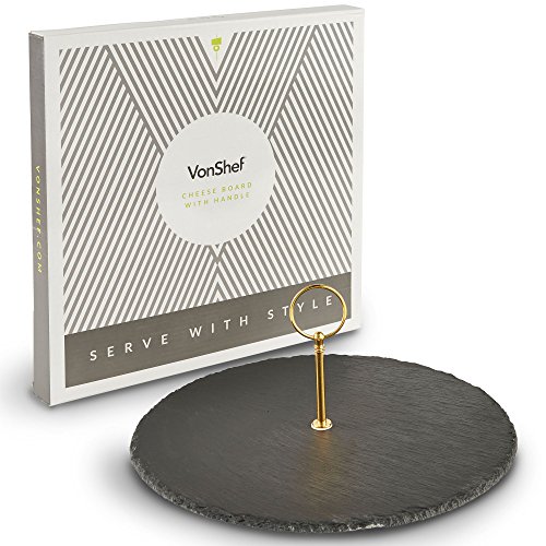 VonShef Tagliere rotondo per formaggi in ardesia con manico