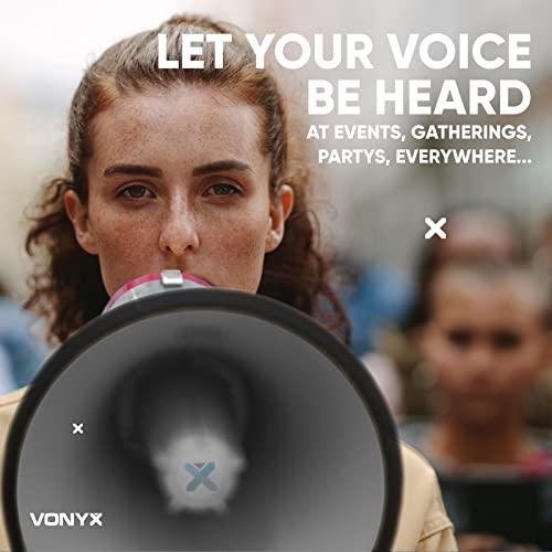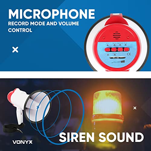 VONYX MEG020 - Megafono compatto 20 W, ideale per eventi e partite sportive - Fino a 700 metri, funzioni di registrazione e sirena, maniglia con cinghia, regolazione del volume