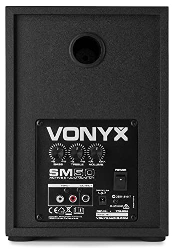 Vonyx SM50 Set di Casse Monitor da Studio - 2 Vie, Potenza: 140 Watt max (2 x 70 Watt), Subwoofer da 5,25", Tweeter da 1", Cabinet in MDF, Controllo Bassi e Alti,Design Elegante, Nero