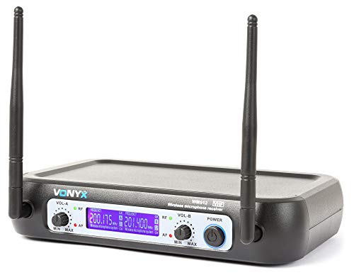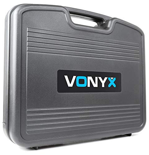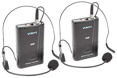 Vonyx WM512H Doppio sistema radiomicrofoni microfoni senza fili (2 microfono ad archetto, VHF, Ricevitore duale e display blu, 2 uscite XLR simmetriche e asimmetriche da 6,3 mm, Valigetta inclusa)