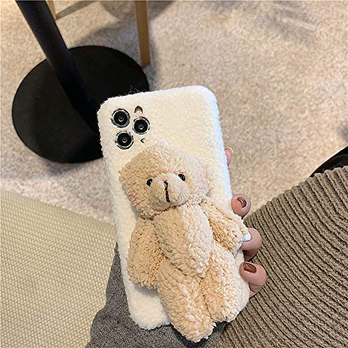 VooDirop - Custodia per iPhone 11, soffice e peloso, a forma di orso 3D per ragazze e donne in morbido silicone flessibile TPU antiurto resistente alle cadute (bianco, iPhone 11)