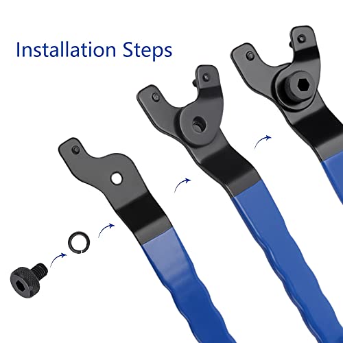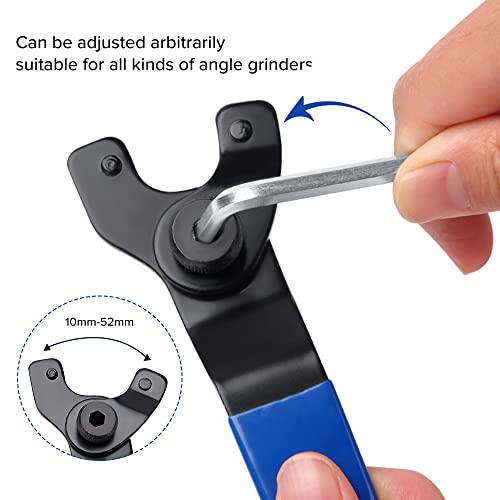 VooGenzek Chiave Regolabile per Smerigliatrice Angolare, con Chiave a Brugola e 2 Flange, 10-52mm Chiave Angolare Universale per Smerigliatrice con Manico in Plastica (Blu Nero)