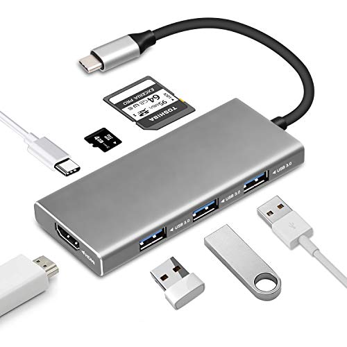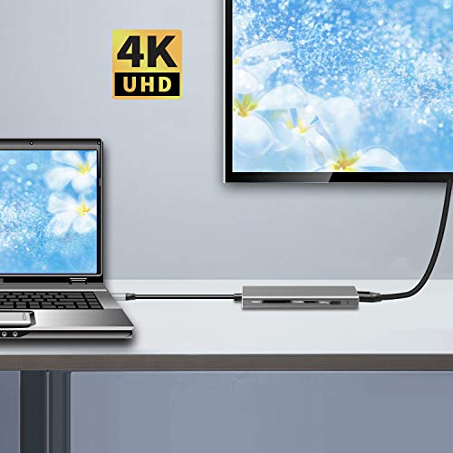 VOOKI Type C Hub 7 in 1 USB C Adattatore HDMI 4K con 3 porte USB 3.0 SD / TF Card Reader, Porta di Alimentazione Compatibile con MacBook Pro 2016/2017, HP Spectre X360 / Dell XPS e Altro
