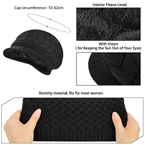 Voqeen Cappelli Invernali Donna Hat Berretto a Maglia Berretto Invernali Sciarpa Touch Screen Guanti Winter Guanti Set Moda Sciarpa 3 Pezzi per Sport all'aperto Jogging Sci Escursionismo Unisex