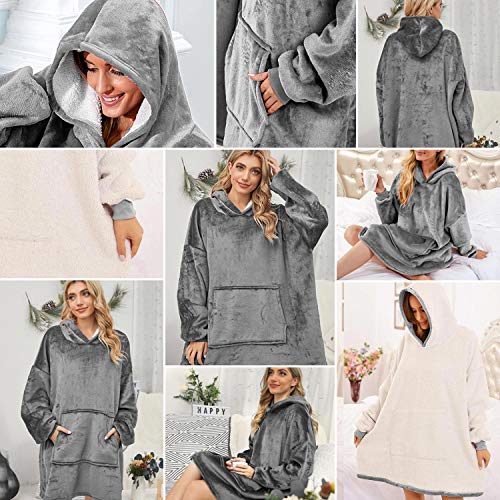 Voqeen Felpa con Cappuccio Donna Felp Oversize Gigante Super Morbida Calda e Confortevole Pullover Hoodie con Tasca Frontale Coperta con Maniche per Adulti Uomini, Donne, Ragazze, Ragazzi (Grigio)