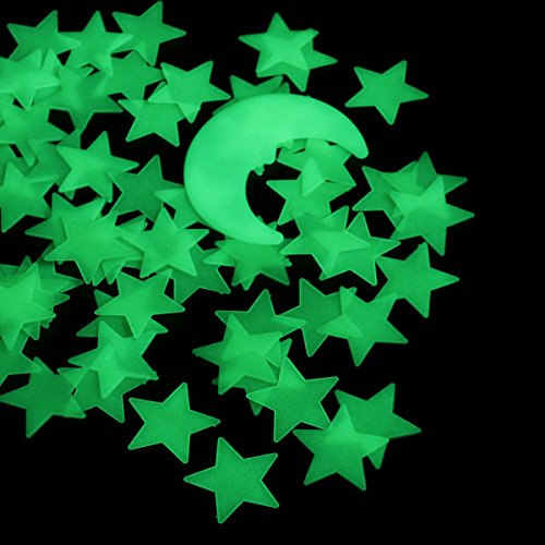 VORCOOL Luna Stelle Fluorescenti Luminose Soffitto Stickers Murali da Parete Giallo Chiaro 101 Pezzi (blu)