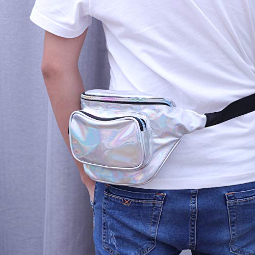 VORCOOL, marsupio da donna olografico impermeabile, borsa sportiva anni ‘80, marsupio alla moda per esterni (argento)