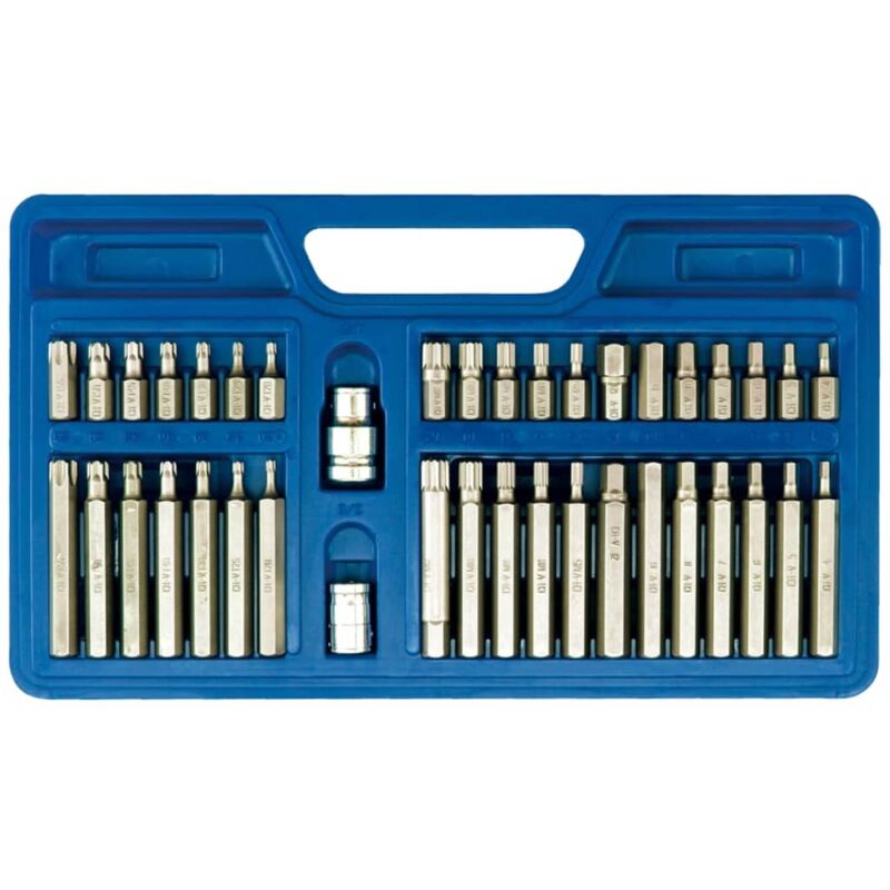 Questo set è di grande aiuto per i tuoi lavori fai-da-te. Questo set per cacciaviti è un set di qualità in acciaio al cromo vanadio. Il set è consegnato in una scatola pratica in plastica. Trasmissione: 12,5 mm (1/2), 10 mm (3/8) Materiale: CrV6150 Chiavi torx: 30 mm - T20, T25, T30, T40, T45, T50, T55 75 mm- T20, T25, T30, T40, T45, T50, T55 Chiavi esagonali: 30 mm - H4, H5, H6, H7, H8, H10, H12 75 mm - H4, H5, H6, H7, H8, H10, H12 Chiavi Spline: 30 mm - M5, M6, M8, M10, M12 75 mm - M5, M6, M8, M10, M12 SKU: 401753