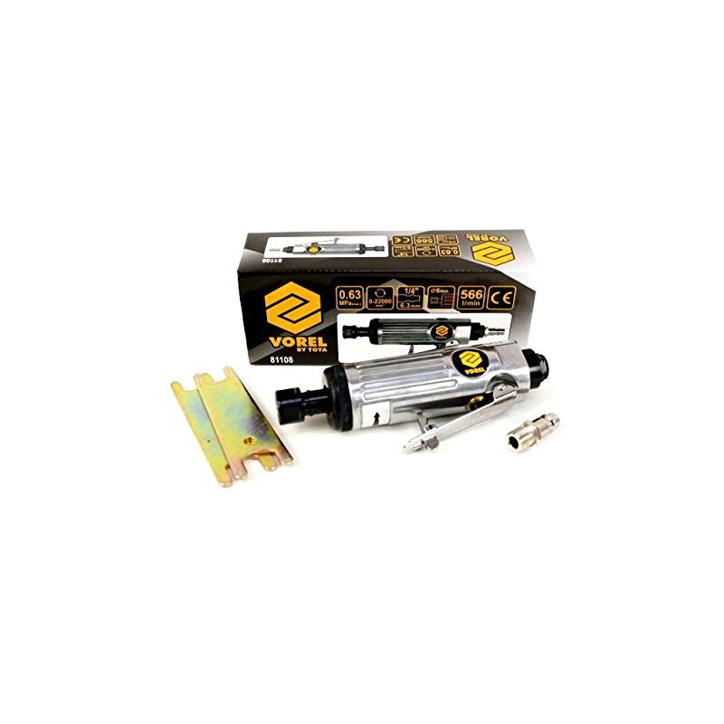 1 pezzo pneumatico de aria de pressione smerigliatrice diritta de vorel, 'Raccordo filettato 1/2 - 1/4/rare - 22 000 min de 1, '1 x 3/8 - Unione con filettatura interna (standard Euro), Tool de registrazione - 6 mm, Consumo de aria (en 6,2 bar) - 115 l/min