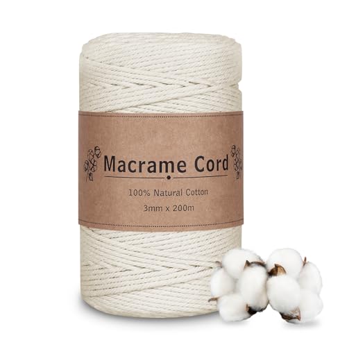 【200m Macrame Corda 3mm】 200 m Filo macrame 3mm sono più che sufficienti per lavorare a maglia. Cotone macrame 3mm è la scelta migliore per il lavoro a maglia, abbastanza spesso per la resistenza e abbastanza sottile per i lavori manuali più delicati.
